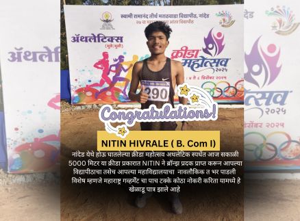 शैक्षणिक सत्र 2025-2026 मध्ये बी.ए., बी. कॉम. बी. एस्सी. भाग -1 मध्ये प्रवेशित सर्व विद्यार्थ्यांना सूचित करण्यात येते की, मंगळवार, दिनांक 22 जुलै, 2025 ते गुरूवार, दिनांक 24 जुलै, 2025 पर्यंत सोबतच्या वेळापत्रकानुसार दिक्षारंभ कार्यक्रमाचे (Induction Programme) आयोजन करण्यात आले आहे.